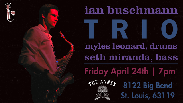 Saxophonist Ian Buschmann, bassist Seth Miranda, and drummer Vincent Young performs an array of original tunes, familiar standards, and creatively reimagined favorites. With a stylistic approach to each of their instruments, the group melds as one to form fresh ideas so you’ll never hear the same set twice.